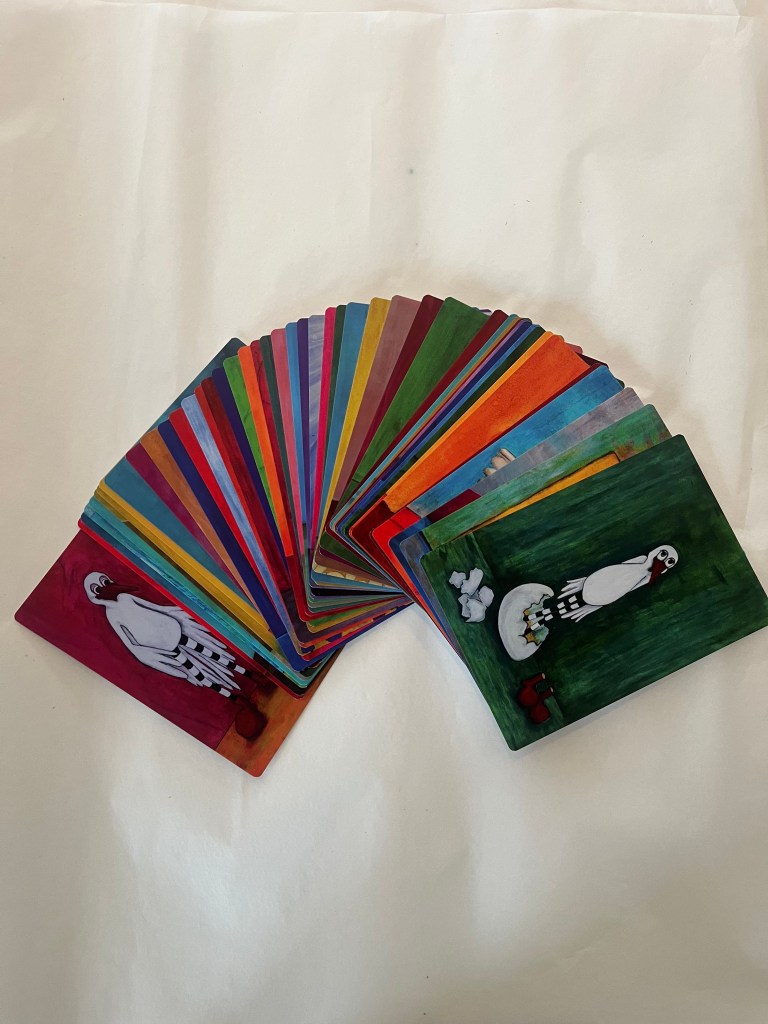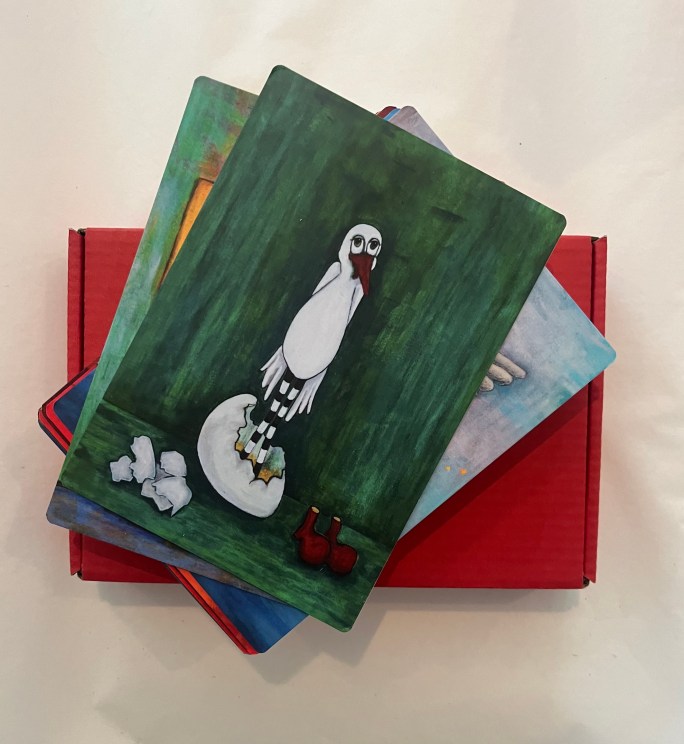 Livsbetraktelser ur ett fågelperspektiv, inspirations- kortlek, är en kortlek där du får du följa en fågel, 47 unika bilder med tillhörande text på baksidan (samma bilder och texter som i boken), vilka handlar om det svåra men också enkla med att vara människa. Kort som skildrar vårt mänskliga beteende, tankar och känslor utifrån ett varmt, avskalat och humoristiskt perspektiv. Bland korten kan du även finna en serie med fågeln i olika yogapositioner med texter rörande våra olika chackran.