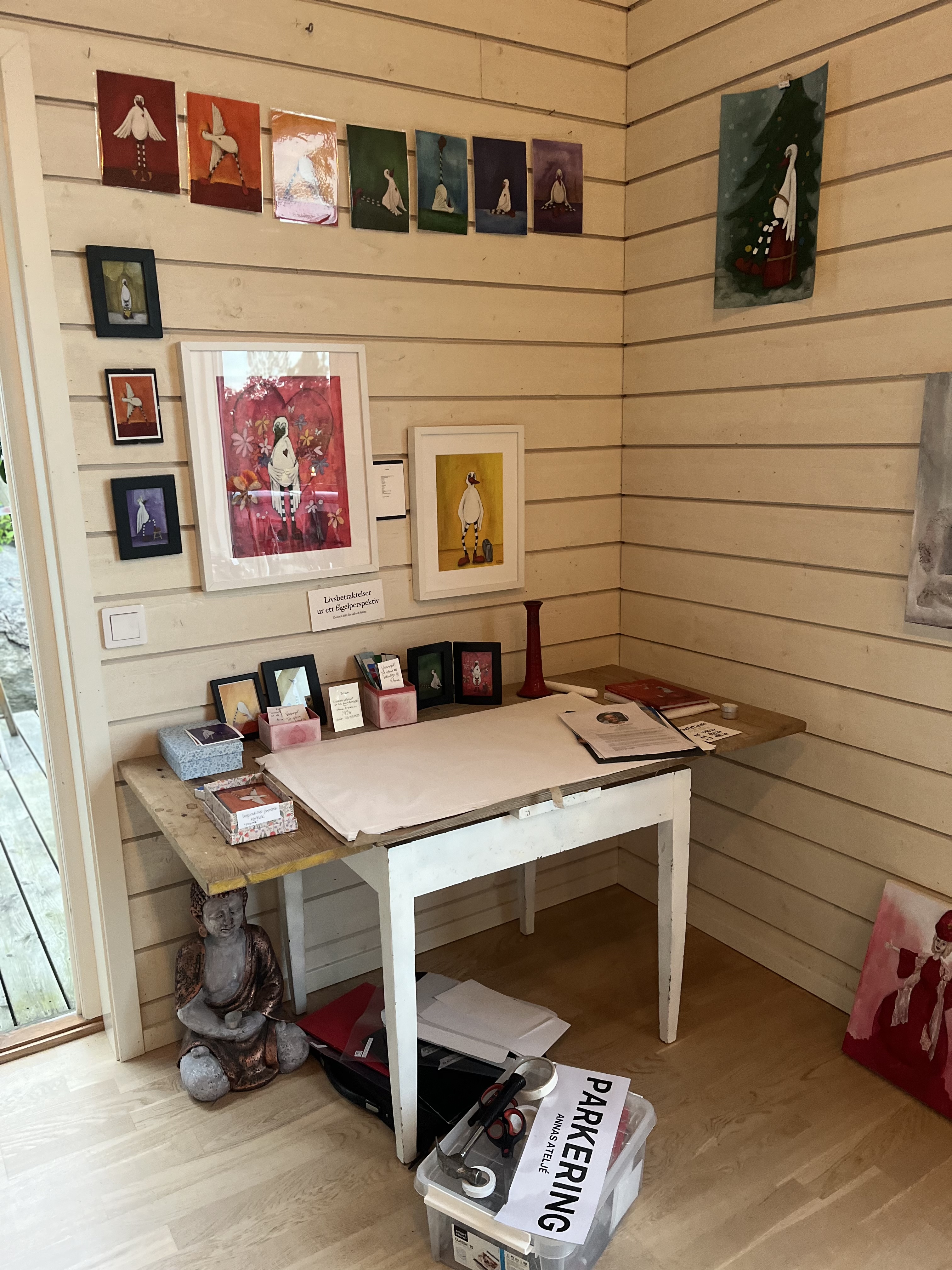 Välkommen att besöka mig i min ateljé där du kan ta del av Utställningen ”Livsbetraktelser ur ett fågelperspektiv” med originalmålningar, konsttryck samt bok).