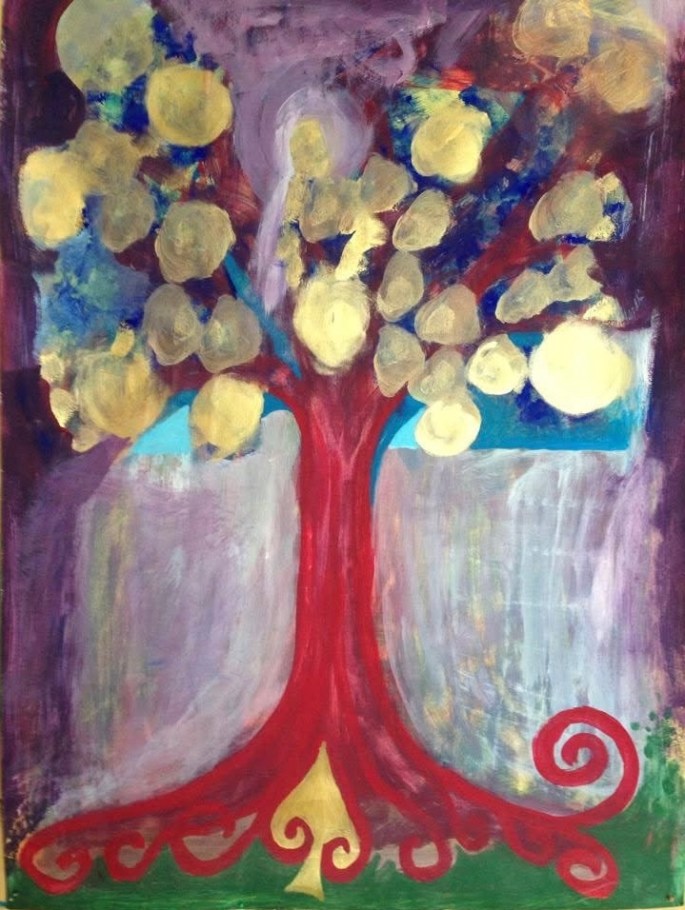 Vi utgår från måleriet och låter det samspela med yoga, meditation, berättelser, poesi, musik, rörelse och visualisering.